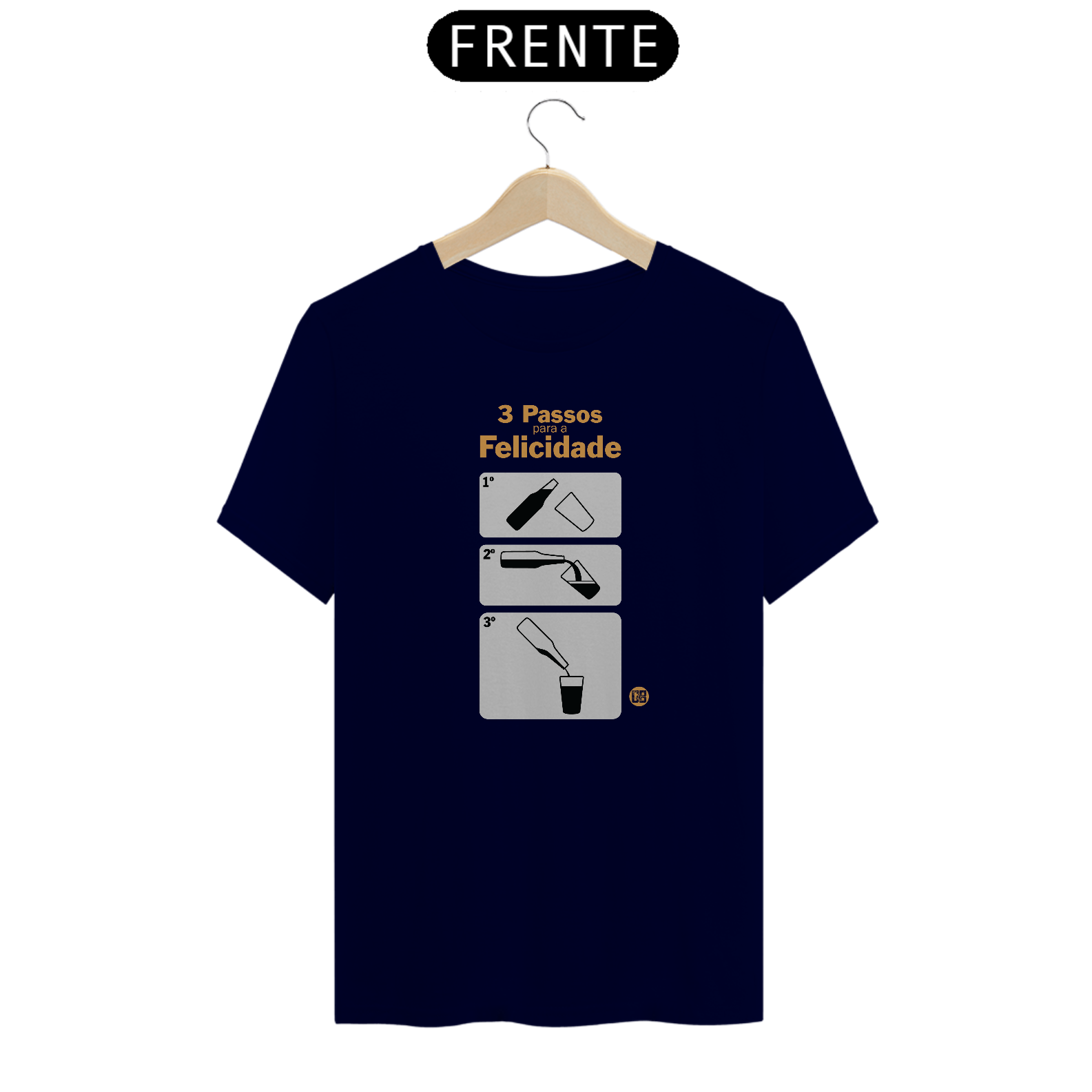 Camiseta Masculina Estampa: Três passos para a felicidade.